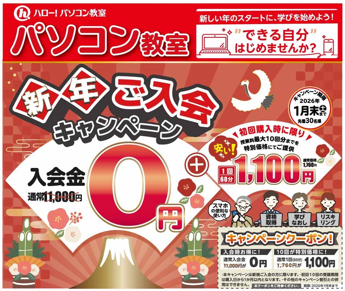 入会金通常11,000円(税込)がなんと0円になる超お得な新春ご入会キャンペーンを実施中🌟